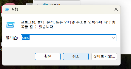 win + r 로 창을 열고 cmd를 입력한 다음 확인