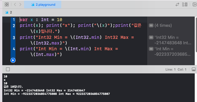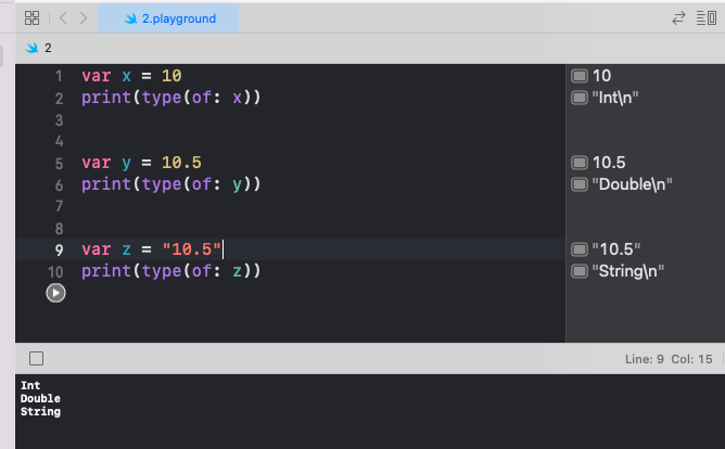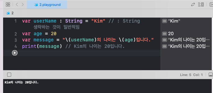 일반적인 종류의 데이터로 동작하고 기본 구문을 작성합니다. Swift는 정수에 사용되는 Int, 부동소수점(floating-point) 값에 사용되는 Double, Boolean 값을 나타내는 Bool, 그리고 텍스트를 나타내는 String