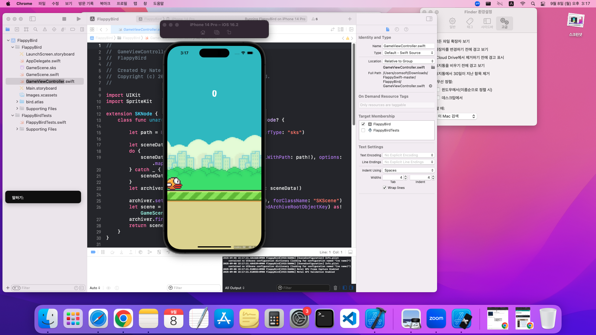 - GameViewController 클래스: 게임 장면을 불러와 SKView에 표시하는 역할을 합니다.