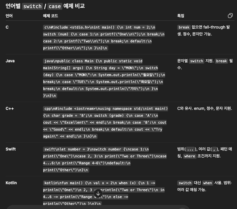 //case문을 계속 실행하려면 fallthrough문 사용
