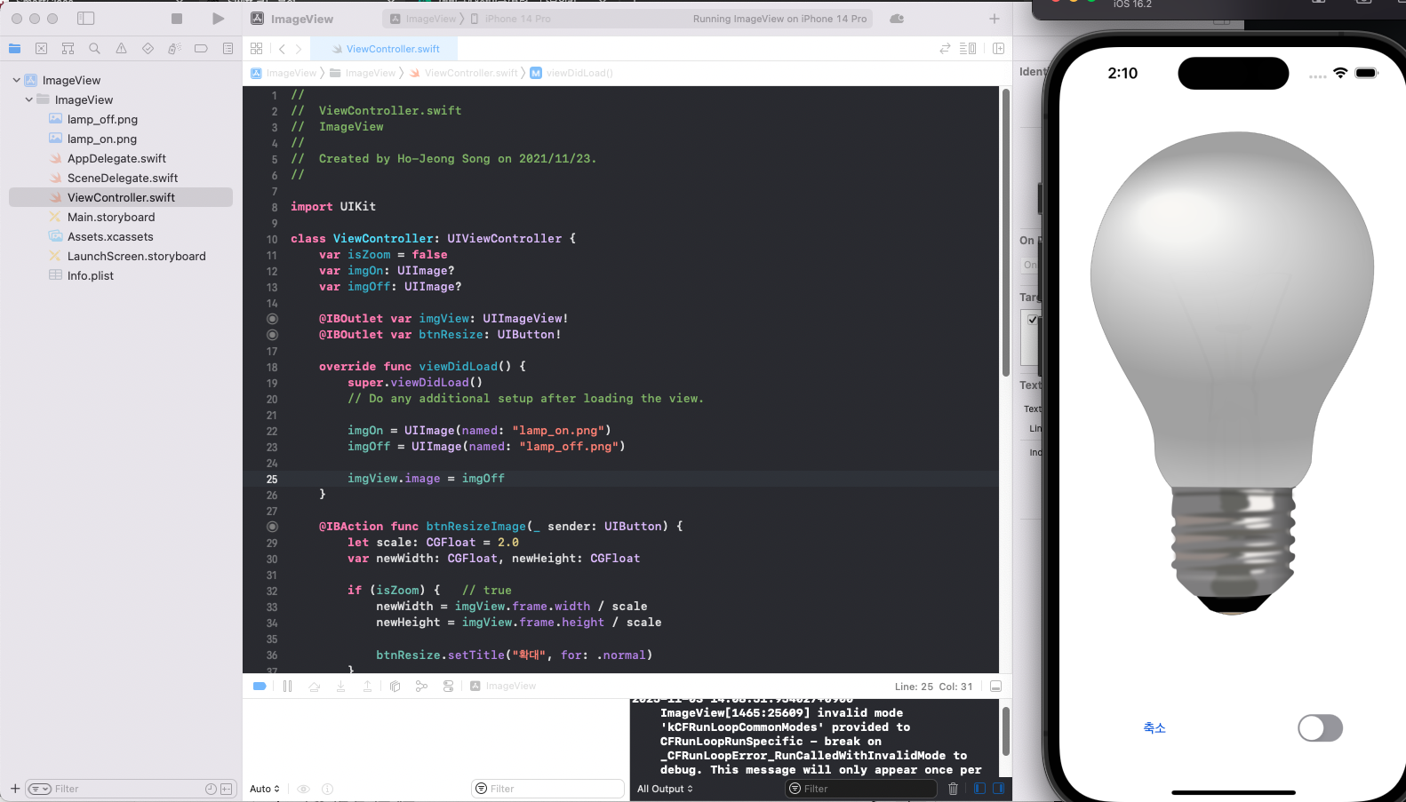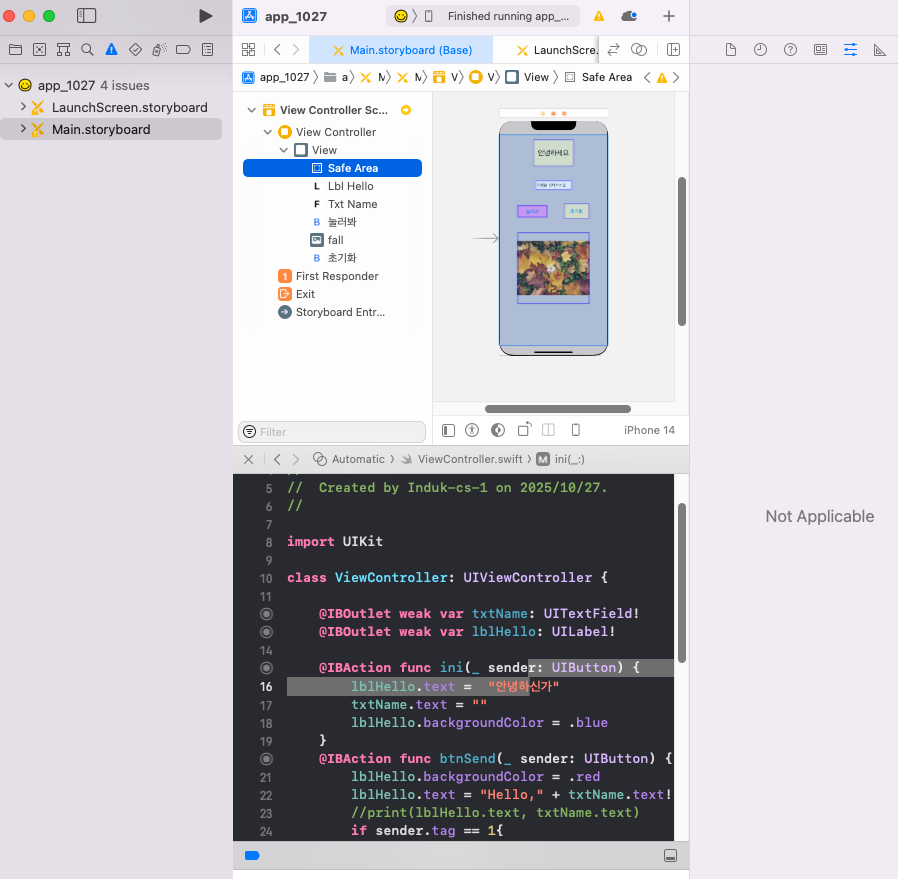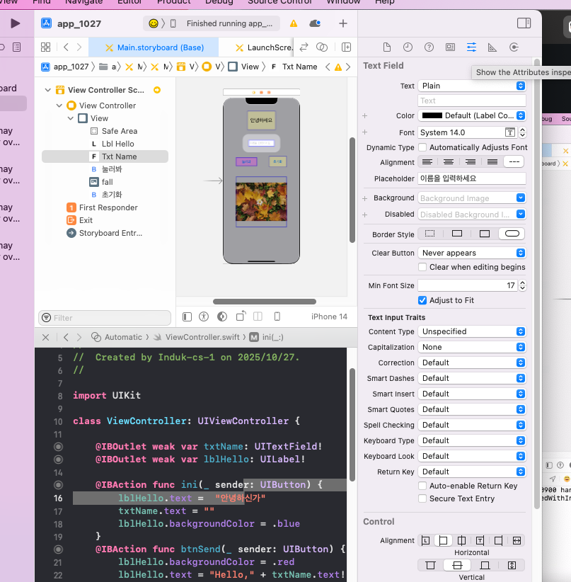 override func viewDidLoad() { //앱 실행시 자동으로 실행되는 소스 - 보통 초기화하고 싶은 소스를 여기 입력함