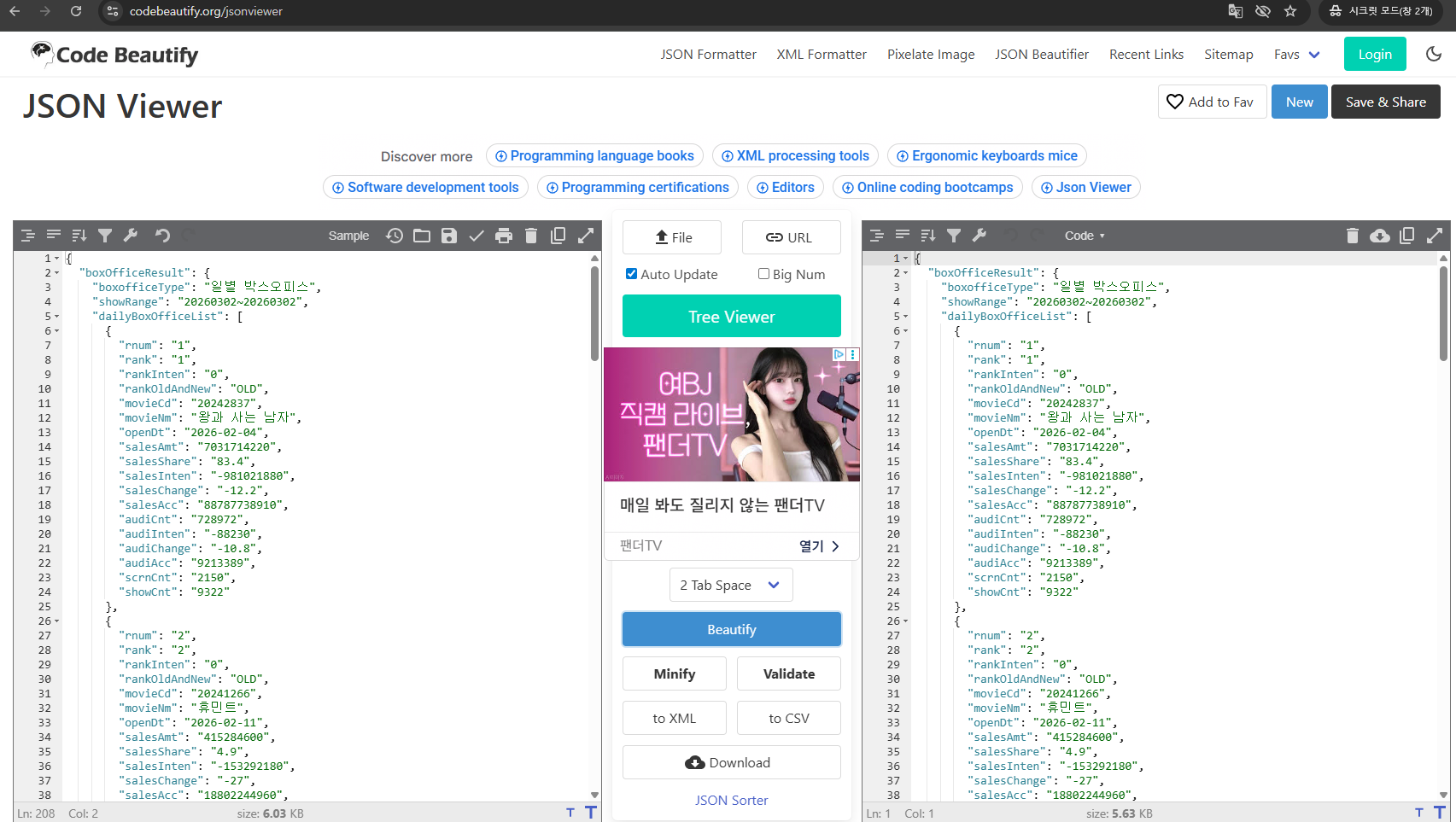 박스오피스는 매일 1번만 바뀝니다.